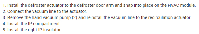 I've attached picture steps below on how to remove and replace the defroster actuator below and its location on your Impala . Hope this helps and thanks for using 2CarPros.