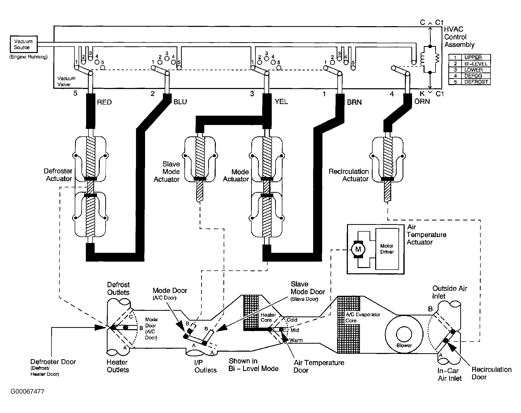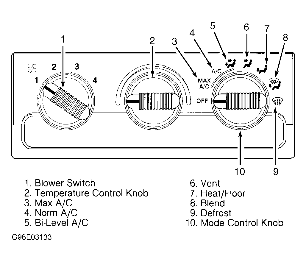 I guess its automatic. The heater will not blow on the floor and defrost. It blows out the front. When you turn the **** it stays the same. What do you think it is?