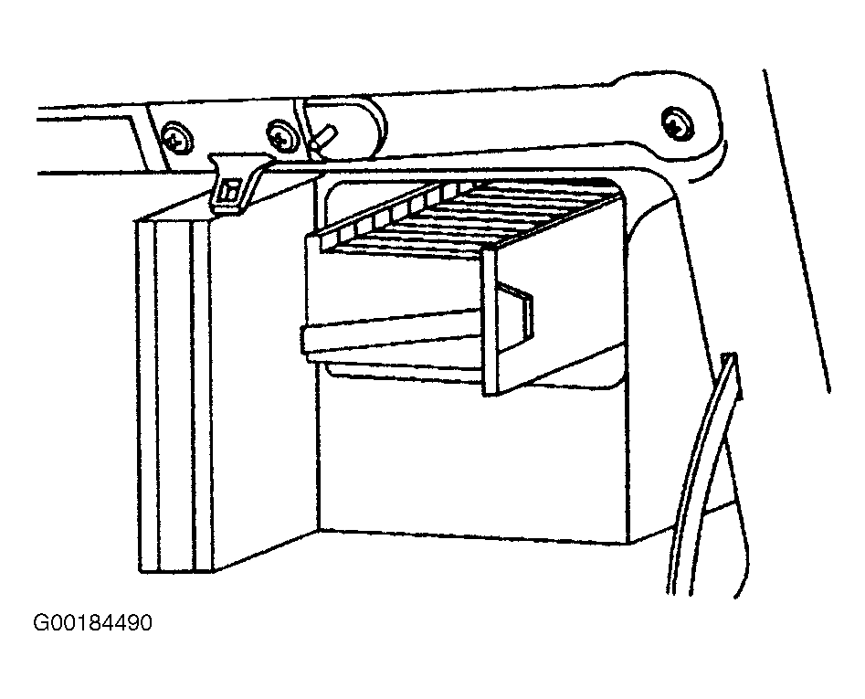 Remove left side instrument panel sound insulator. Remove steering column instrument panel filler. Cut tie strap located on back side of mode valve vacuum actuator. Disconnect vacuum lines. Unsnap case joint and remove mode valve. See Fig. 6. To install, reverse removal procedure. Replace tie strap located on back side of mode valve vacuum actuator.
