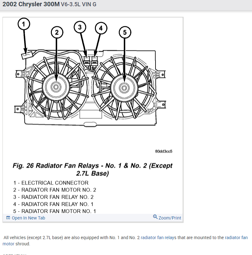 Check for any corrosion or bunt pin(s). This vehicle has 2 relays for the radiator fans.
