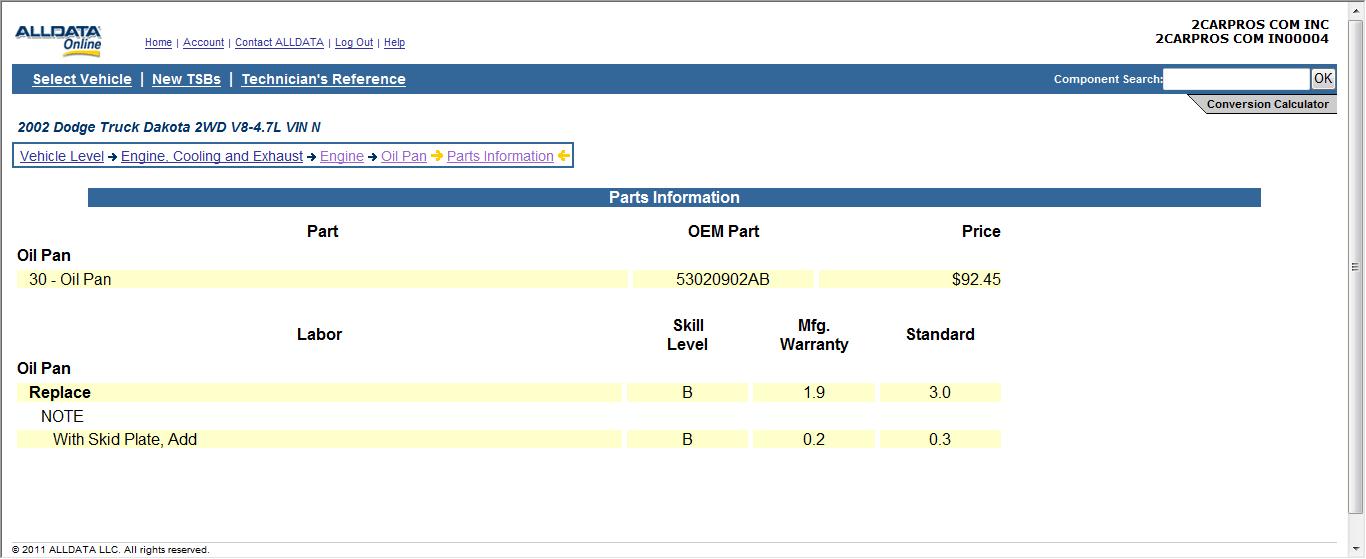 What would it cost to replace the oil pump on a 2002 Dodge Dakota