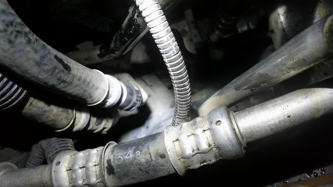Well, unlike my jimmy. I see 2 hose that come from firewall. Then they have 3 way tees with both ends going back into firewall. Presumbly, to evaporator. The parts of tee's for both line go all the way down to underbody supposing going to back of car. Is there a way can tell if engine is running one hot or cold. Etc?