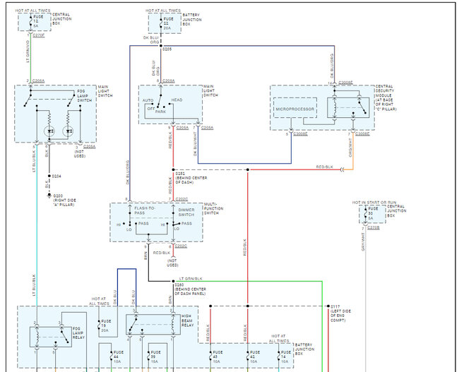 These might be separate problems, but we have some fuses to check first. Here is a guide to help and the headlight and blinker wiring diagrams so you can see which fuses to check and how the system works.