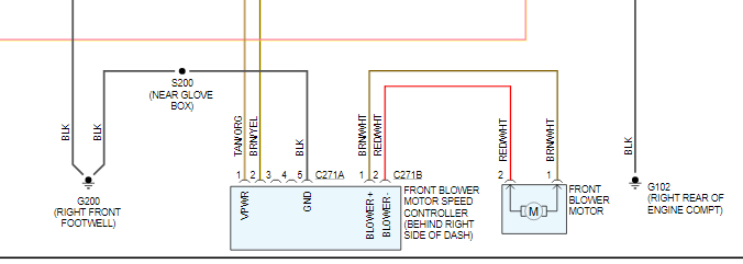 Depending on the heater blower motor switch position, series resistance is added or bypassed in the A/C blower motor circuit to decrease or increase A/C blower motor speed.