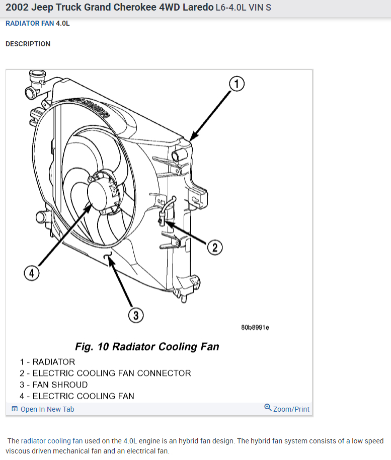 The radiator cooling fan used on the 4.0L engine is an hybrid fan design.