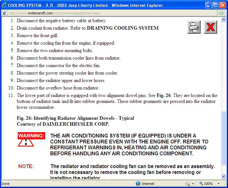 What you want to see is both radiator hoses disconnected, the lower hose placed in a drain and a pressurized source hooked up to the upper hose.