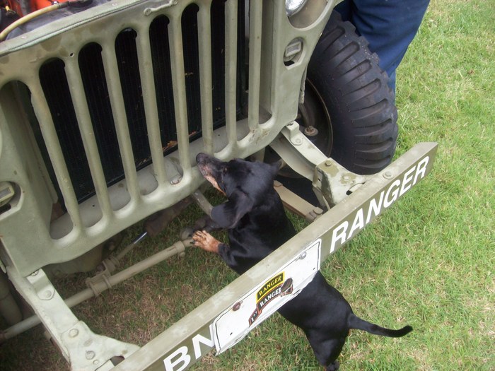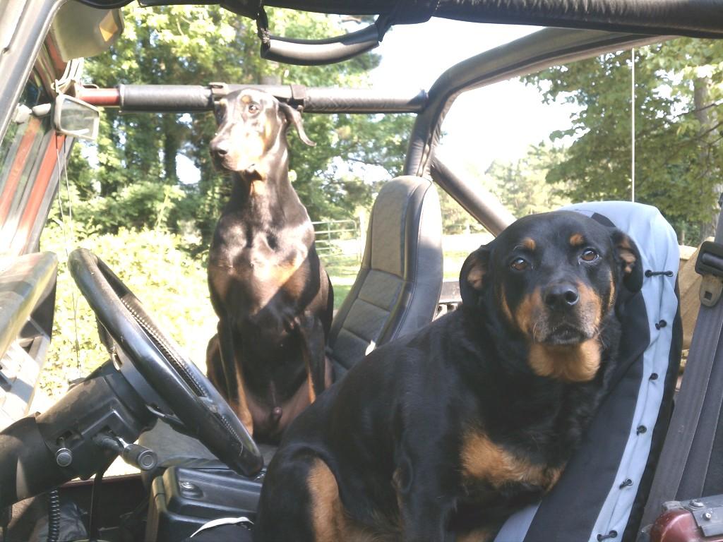 I HAVE A FRIEND WITH A '87 WRANGLERHE'S GOT A ROTTWEILER (BEAR) AND A DOBERMAN (APOLLO) APOLLO IS REALLY ALOT BIGGER THAN THE PIC REFLECTS