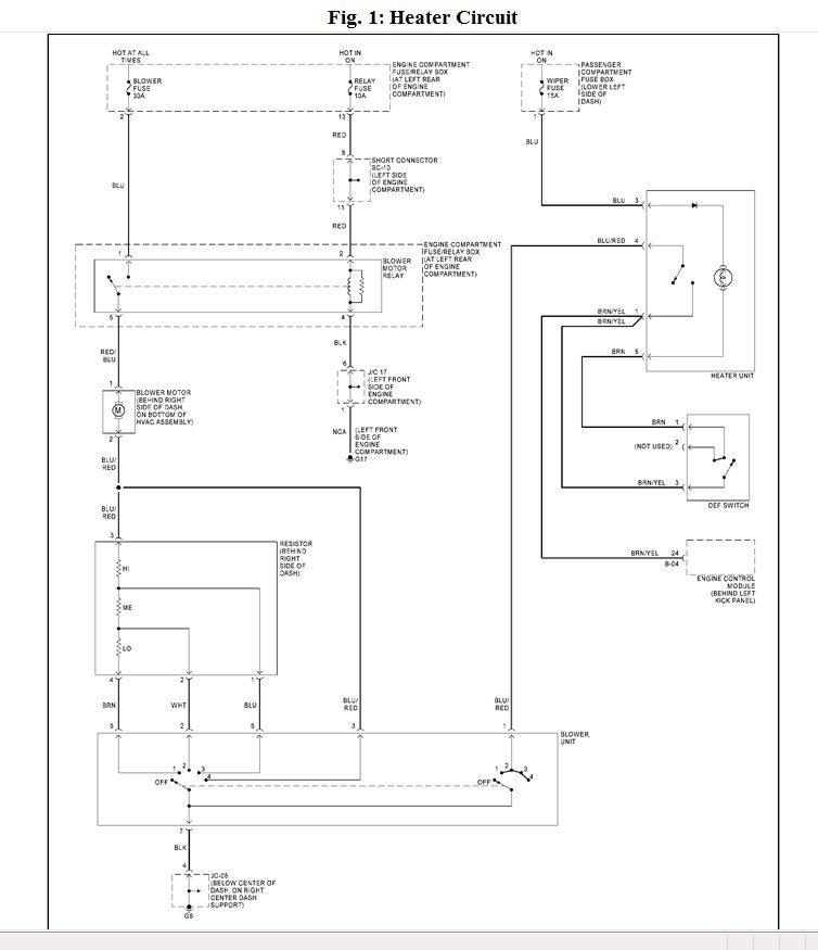 Red and blue is your power side and blue and red is your ground side at the blower motor connector on bottom of HVAC assy
