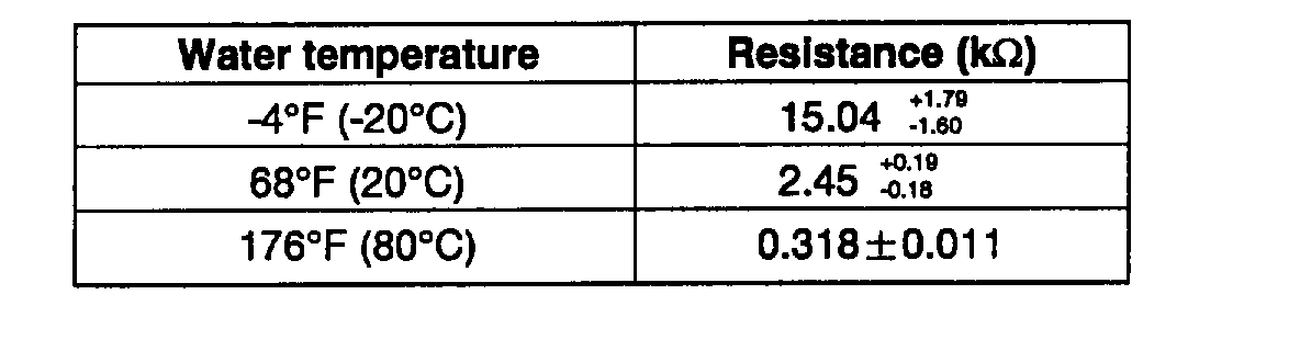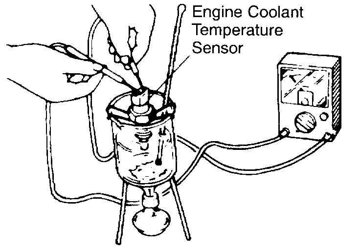 Also, the sensor can be tested to see if it is good by checking checking resistance. Basically, you take the sensor, place it in a specified temperature liquid and check if it provides the correct resistance. (See pictures 1 and 2)