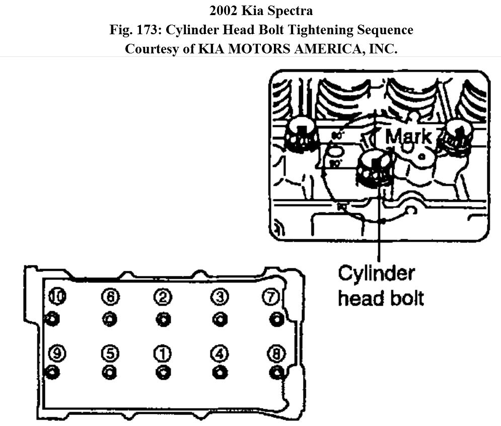 a. Tighten cylinder head bolts in order shown in illustration. See Fig. 173.