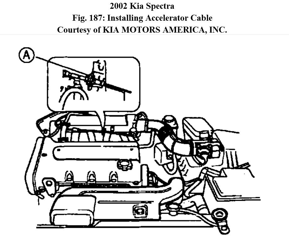 19. Install accelerator cable and check cable deflection. If deflection is not correct, adjust by turning nut "A".