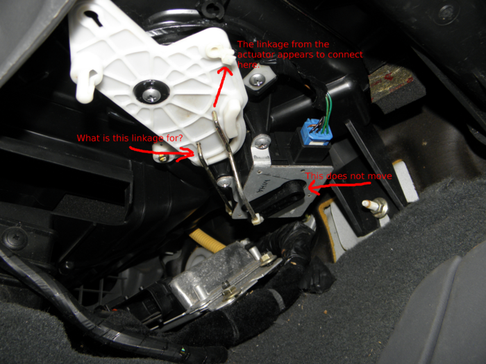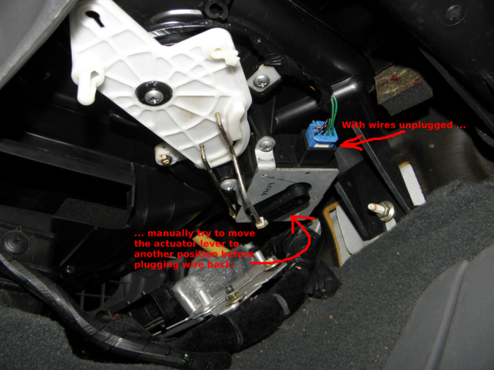 The electrical connection on the actuator seems to be a blue plug with maybe six contacts in it (I didn't remove that yet, since I wouldn't know what to look for with it).