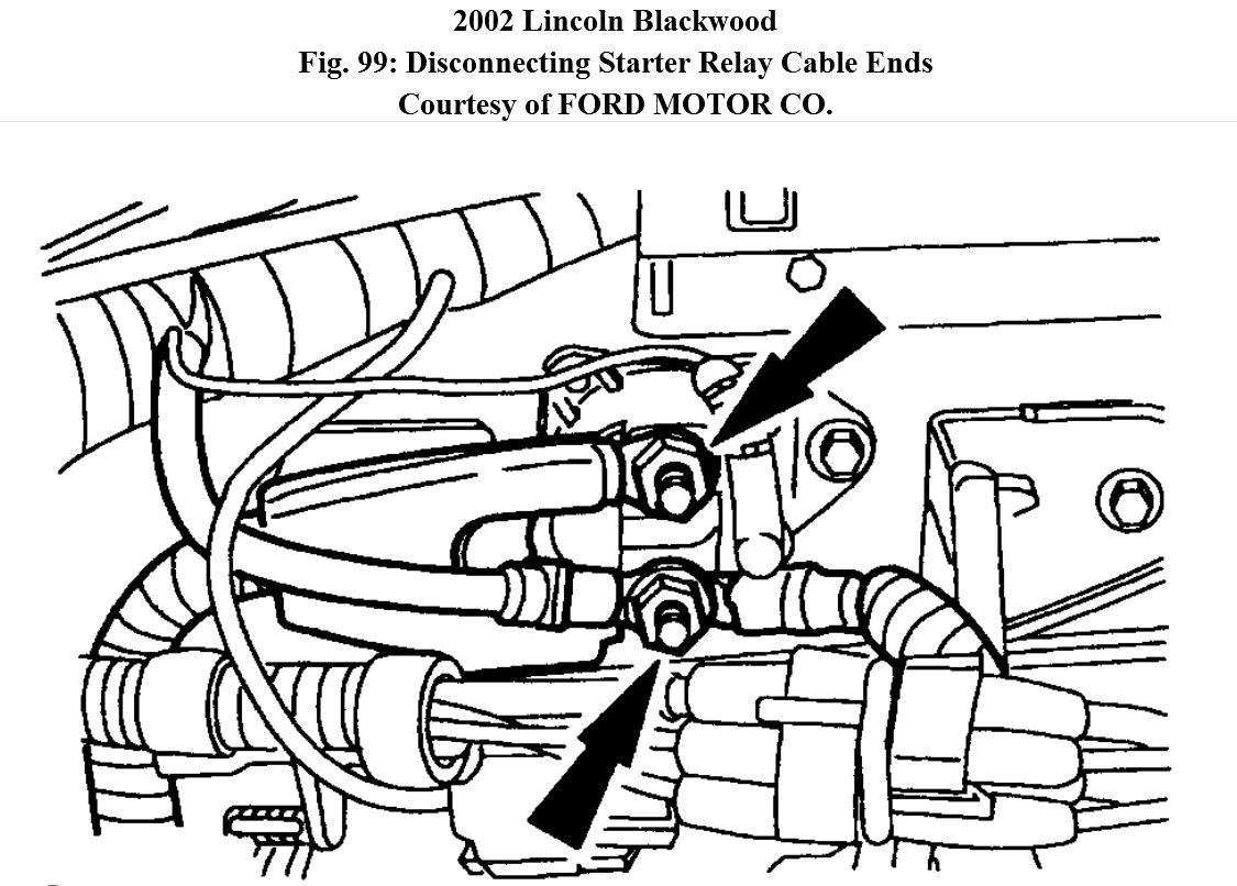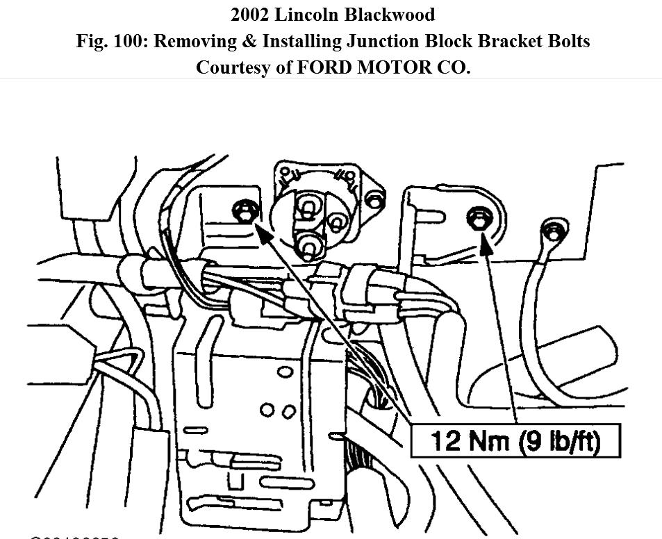 1. Disconnect negative battery cable. Drain cooling system. Remove instrument panel. Remove junction block splash shield. See Fig. 187. Remove bolts and disconnect cable ends from starter relay. See Fig. 99. Remove bolts and position aside junction block bracket. See Fig. 100. Disconnect heater hose couplings. See Fig. 152.