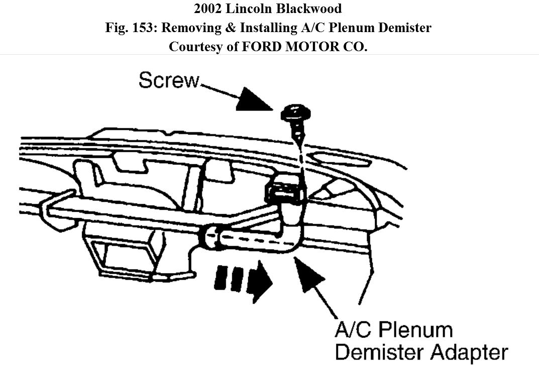 2. Remove screw and A/C plenum demister adapter. See Fig. 153. Remove screws and position aside relay bracket. See Fig. 154. Disconnect A/C vacuum hose from A/C vacuum check valve. See Fig. 155.