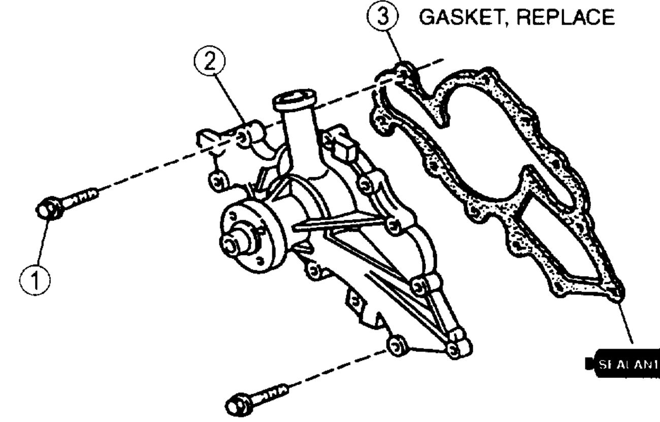 2. Apply sealant to both sides of gasket and place it on water pump.