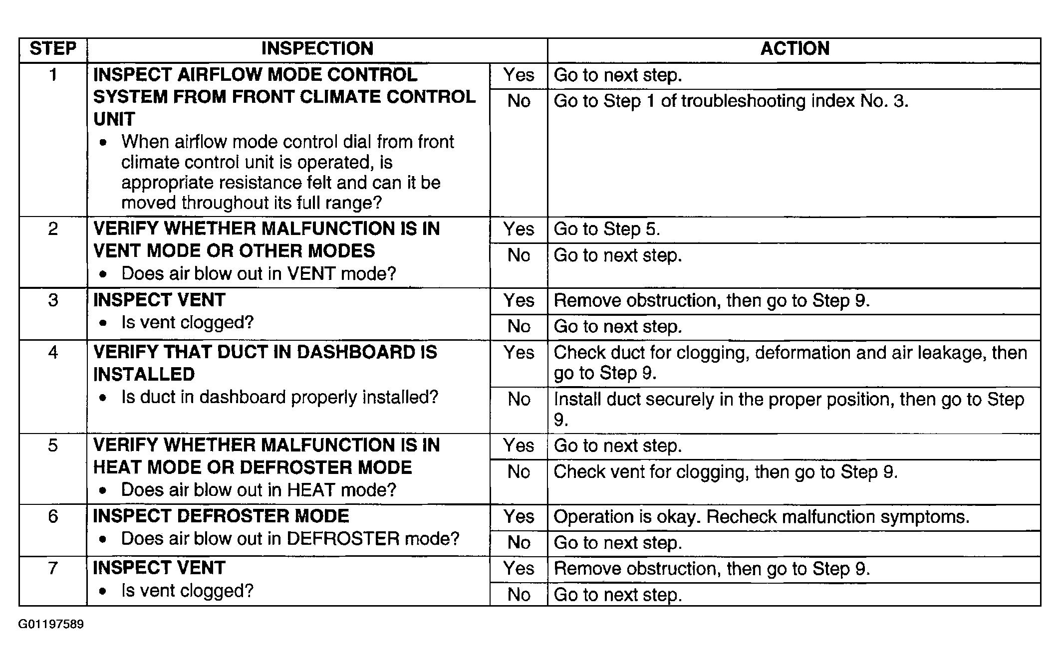 All the other settings in the climate control panel work, but setting the mode to any of the floor ducts doesn't work. Could be broken cable or jammed air floor door? How can I diagnose without disassembling the dashboard? Is there a way to reach the air flow door or see the cables without disassembling the heater case?