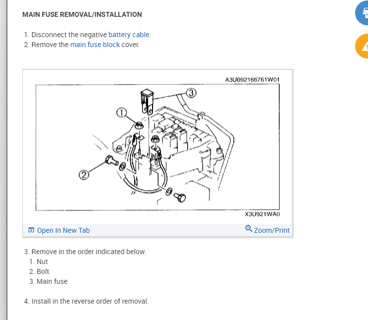 Blew main fuse betwen battery and fuse box. How do I replace it? Also, car will start and run with a bypass but radio, interior lights (and probably brake lights) do not work. Fuses in kick panel are ok.