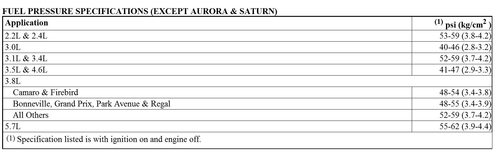 Engine Mechanical Problem 1998 Oldsmobile Intrigue 4 Cyl Two Wheel Drive Automatic What Should Fuel Pressure Be For A 98 Oldsmoible...