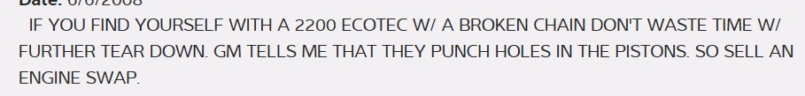 The timing chain broke on my 2002 pontiac sunfire does it automatically mean that the rods are shot. Car was fine all day then coming home went dead fuel pump runs. When you turn it over it sounds really fast. Is there a chance rods are still good? Is it worth the time and money to fix