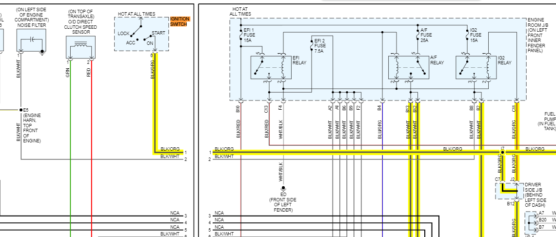 Looking at the schematic, at the ignition switch, there is a black wire with an orange tracer. That supplies power to the ignition 2 relay and the circuit open relay. I wonder if you lose power when the key returns to the run position.