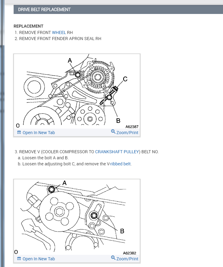 Squealing belt. How do I replace? Just loosen tensioner and replace? Or loosen 2 or 3 bolts, then crank on key tensioner bolt to loosen and remove the belt?