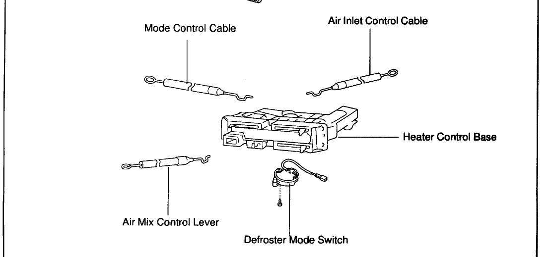 Here are diagrams to help you see what you are in for when changing the heater control unit out. It looks like there are three control cables that must be disconnected before the unit will come out. Check out the diagrams (Below) Please let us know if you need anything else to get the problem fixed.