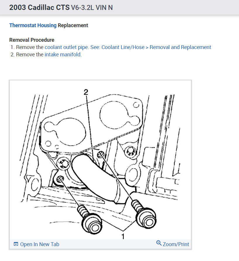 The upper and lower intake need to be off, and the transfer pipe from the upper hose to the t-stat housing needs to come out. It uses external torx(e-torx) type fasteners. The bolt that holds the pipe, also holds the oil dipstick tube, and an engine lift strap.