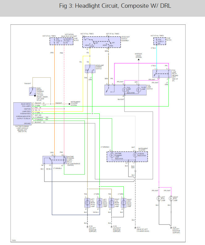 You can also try removing the number 15 fuse and see what happens that fuse is for the drl and may cancel out the daylight driving lights so the night time lights work.