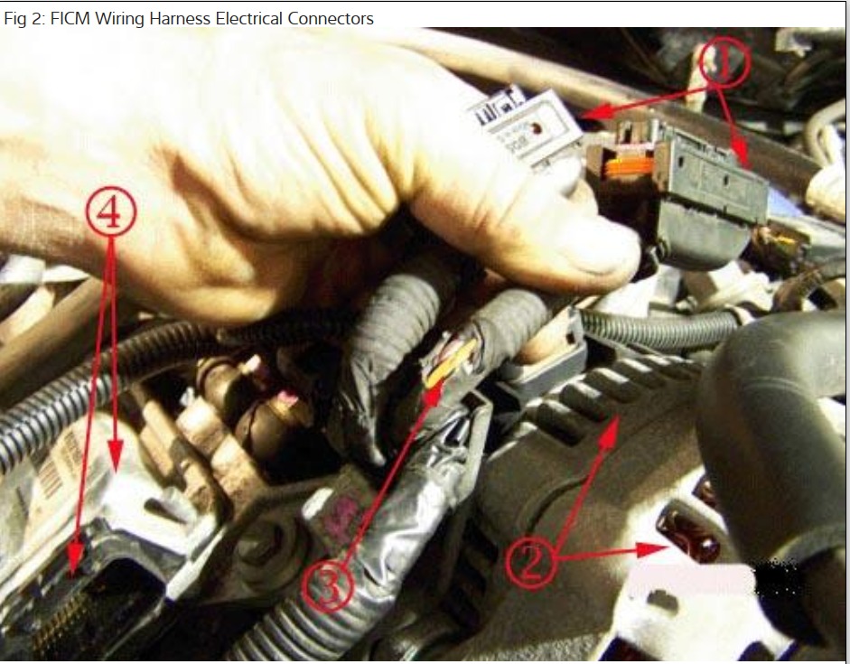 Also, on any of the above listed vehicles, the PCM wiring harness may be chafing against the precharge pump bracket (Refer to Document ID# 1252958) or the battery tray.