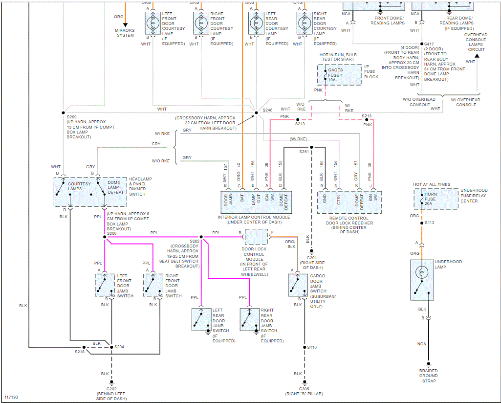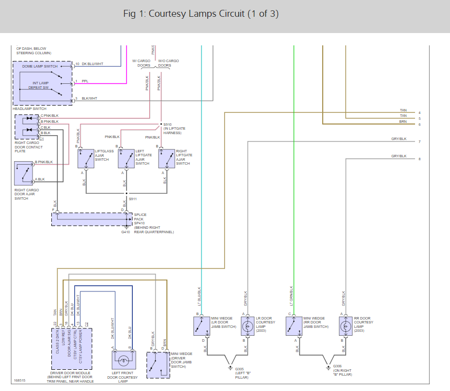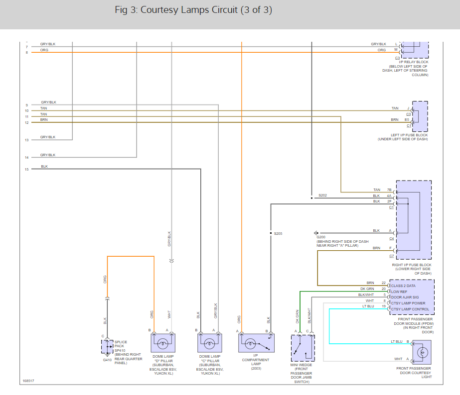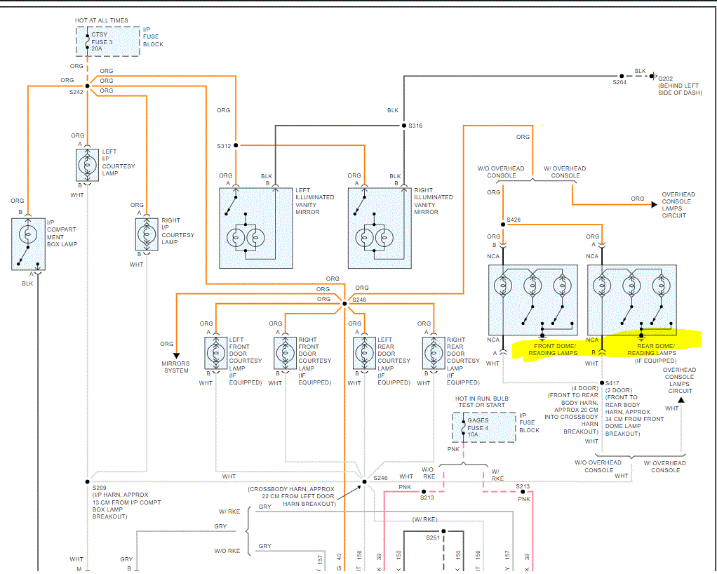 If you look at the pics below, I attached the entire wiring schematic for these lights. Note the power to the dome light is shared with many other lights. Therefore, if the issue was before the dome light, the others would likely turn on as well.