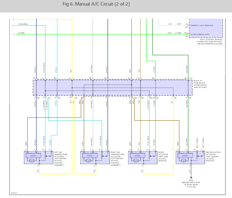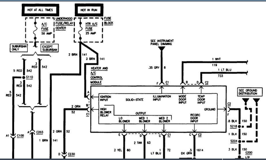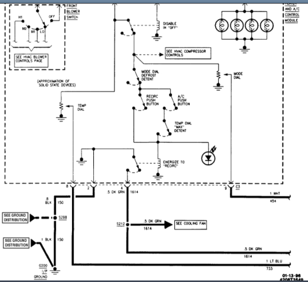 FYI: the dash A/C and recirculate buttons light when pushed and the hot cold doors motors do work so power to the control is okay.