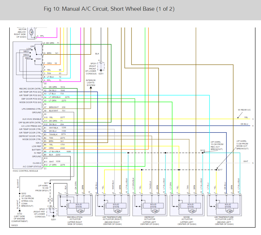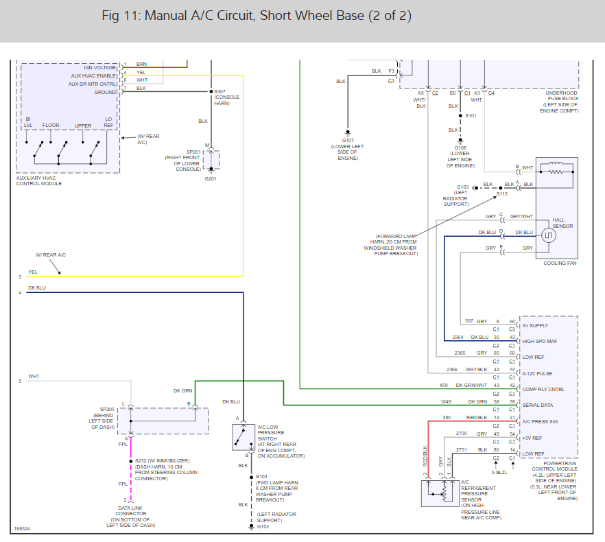The rear a/c will not come on using either the front or rear controls. The rear resistor and hvac control module has been replaced. There is 12v on the aux blower motor control line and when checking resistance to ground the fan will come on. I do not see any voltage change on the line using either control knob. Any advice on the next step would be appreciated.