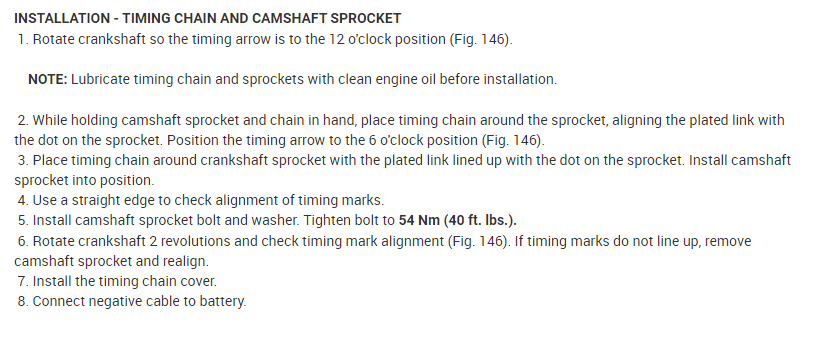 First make sure that the timing chain is lined up correctly (see diagrams below).