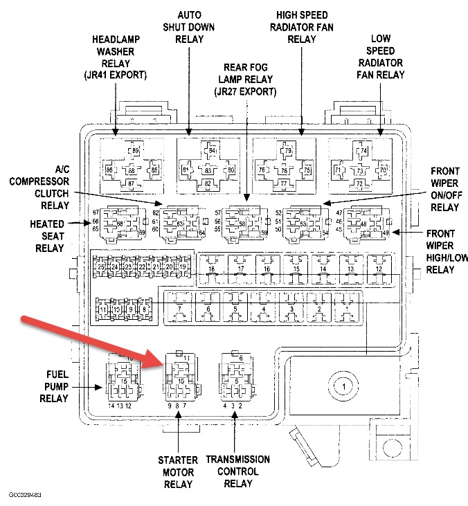 Every light on car comes on, but theres nothing when turning over key. Located fuse boxes inside & @ engine. Could you plz tell me which is starter relay & ignition fuse?