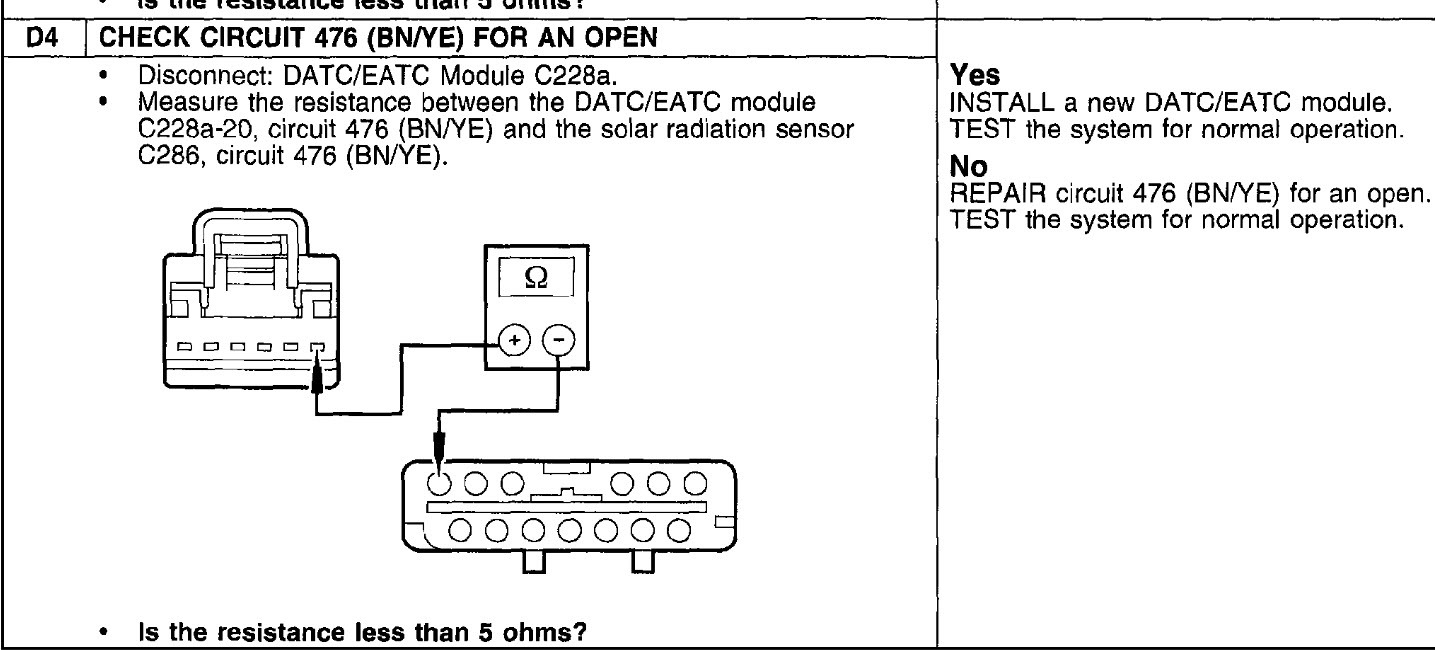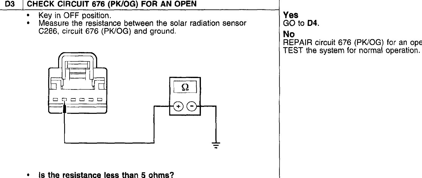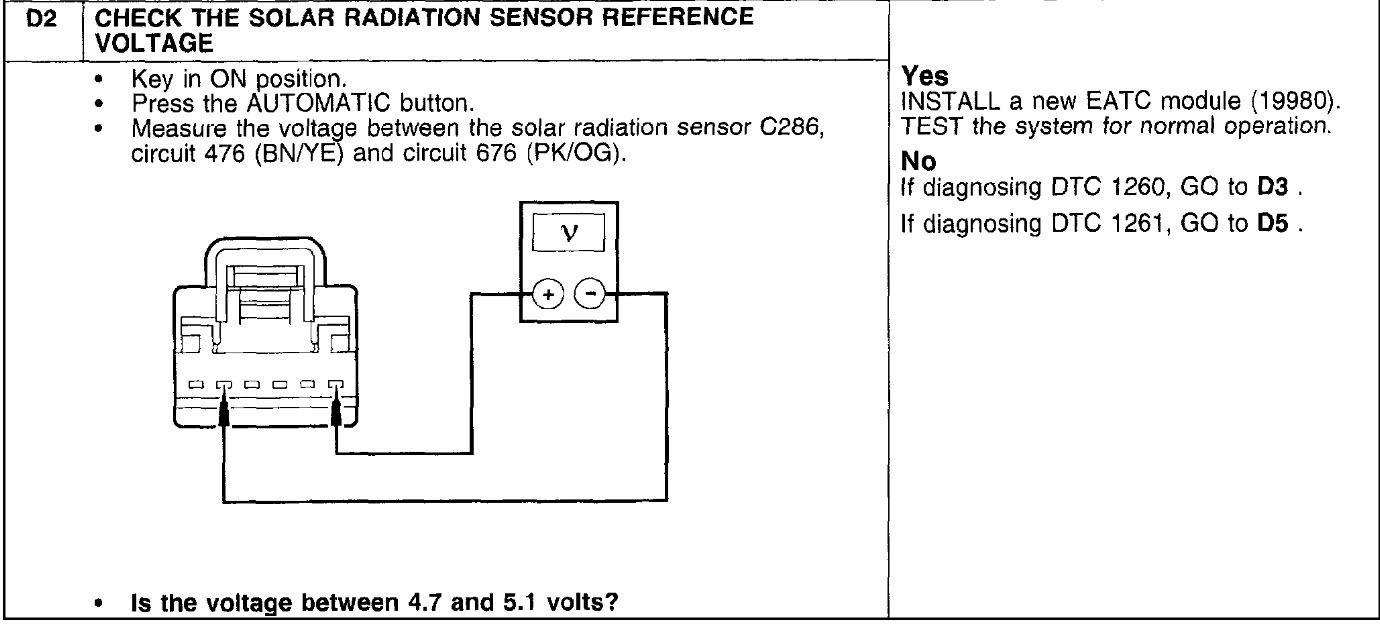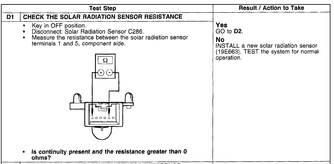 The pics i'm sending is for one of the codes the others deal with a blend door problem. It is 18 pages long and to much for me to copy and send. I would recommend seeing if library has 2002-3-4 repair books and go to pinpoint test A under auto hvac repair. You can also rent a manual from us for a week I think cost is $13 or so not sure. The other code deals with the one sensor that is giving the code. The solar radiation sensor is probably in dash on top.