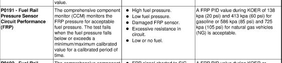 Fuel Rail Pressure Sensor Circuit Performance (Frp)