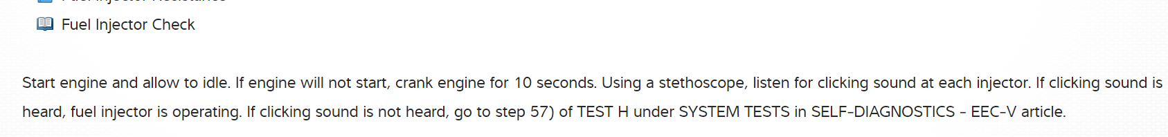 Okay, I did not get a chance to run your suggested test, but I do have more information when I go out and start the car after a few days I turn the key on and the check engine light comes on and its starts then I turn it off and try to start it again and no check engine light and it won't start this seems to be consistent, hooked up code reader to it, no codes KOER no codes KOEO using a Bosch code reader codes were read both when car was running and when it wont start, I did note that when I was reading individual sensors that fuel 1 was open and fuel 2 was n/a, okay, what do you think? Now I'm thinking it has something to do with the main computer at the kick panel passenger side floorboard. I was thinking ignition switch for a minute but I cycled the key many times trying to see if it was a shady connection there, I don't think that's it now. Too many things to do and not enough hours in the day to do them. By the way how is your day?