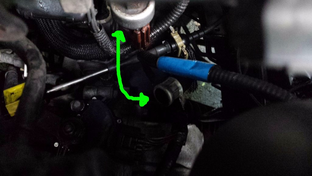 Filled the reservoir with water, started up car. Went back to check under the hood and saw steam in upper right hand corner. After a few minutes of poking around I saw that there is a hose missing.