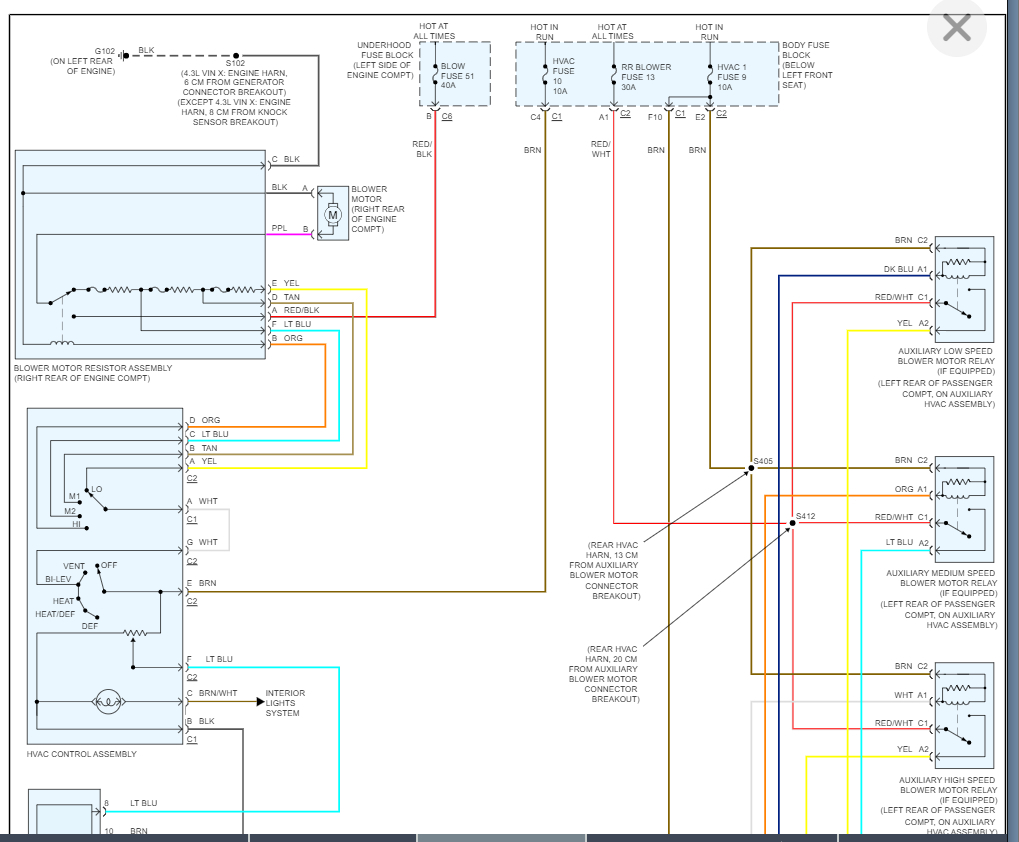 So, if the fuse is okay, then we need to check the voltage at the HVAC assembly or resistor on the other circuits. I suspect the control assembly will be the issue but let's use these guides to help with this testing: