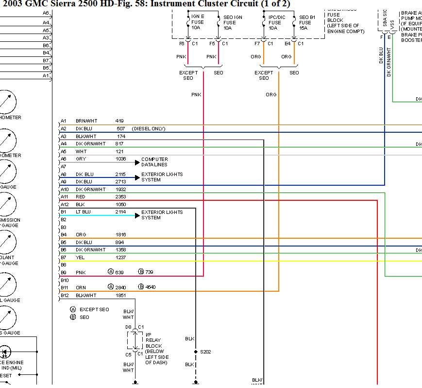 What are the color and pin locations on. The instrument cluster plug 2003gmc 2500 hd 2wd6.0 auto. With trans temp guage