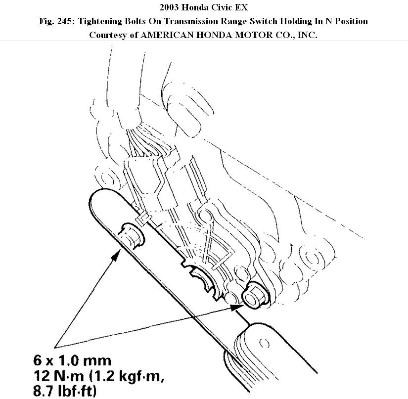Fig. 245: Tightening Bolts On Transmission Range Switch Holding In N Position