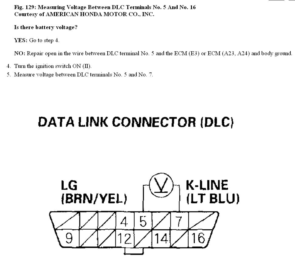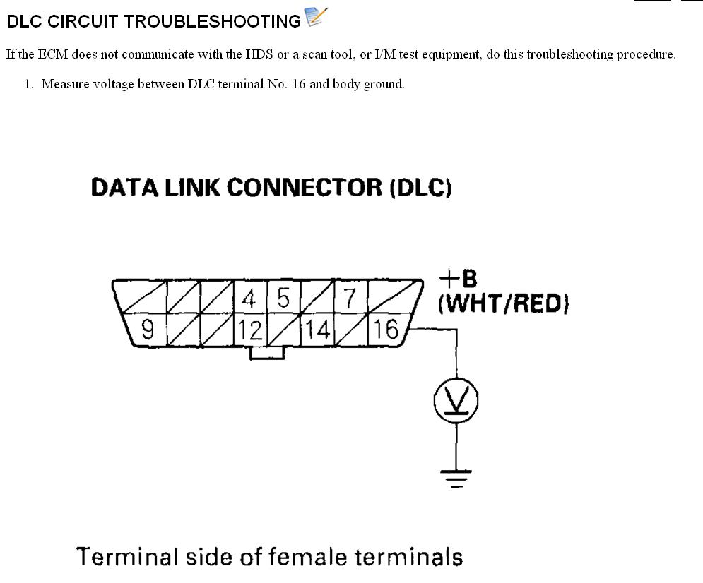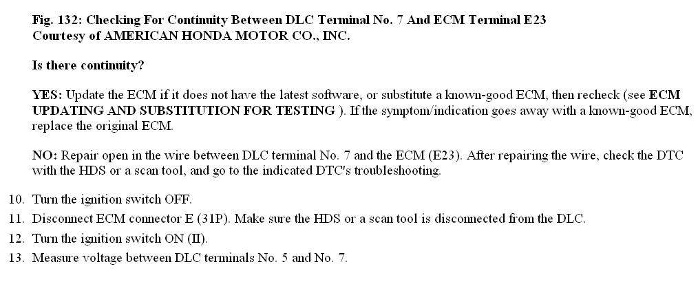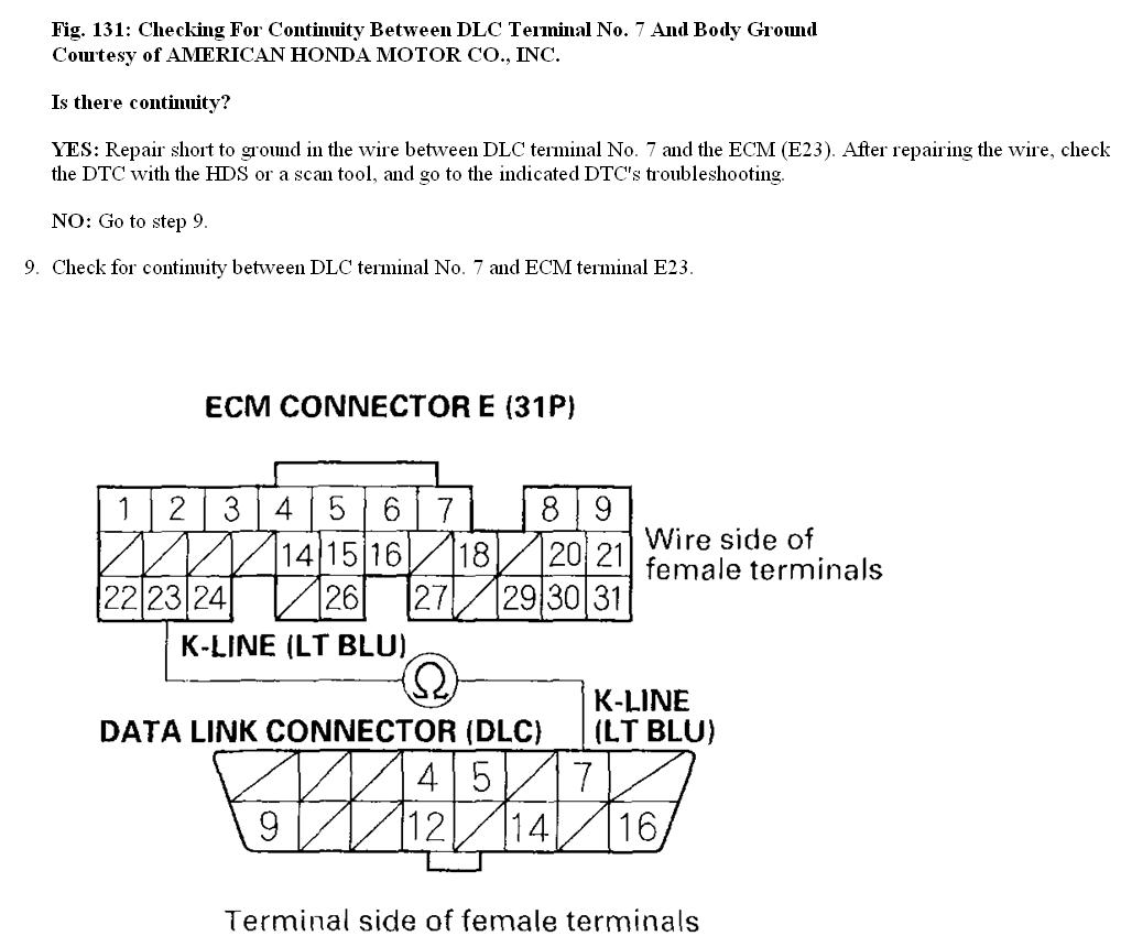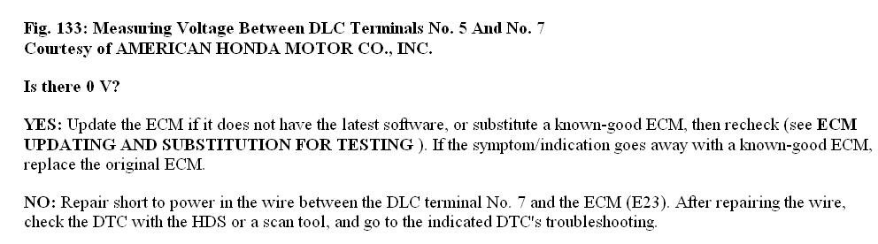 If the 1.7 volt is achieved at Step 13, it indicates there is a short to power in the wire between DLC terminal # 7 and ECM/PCM (E23).