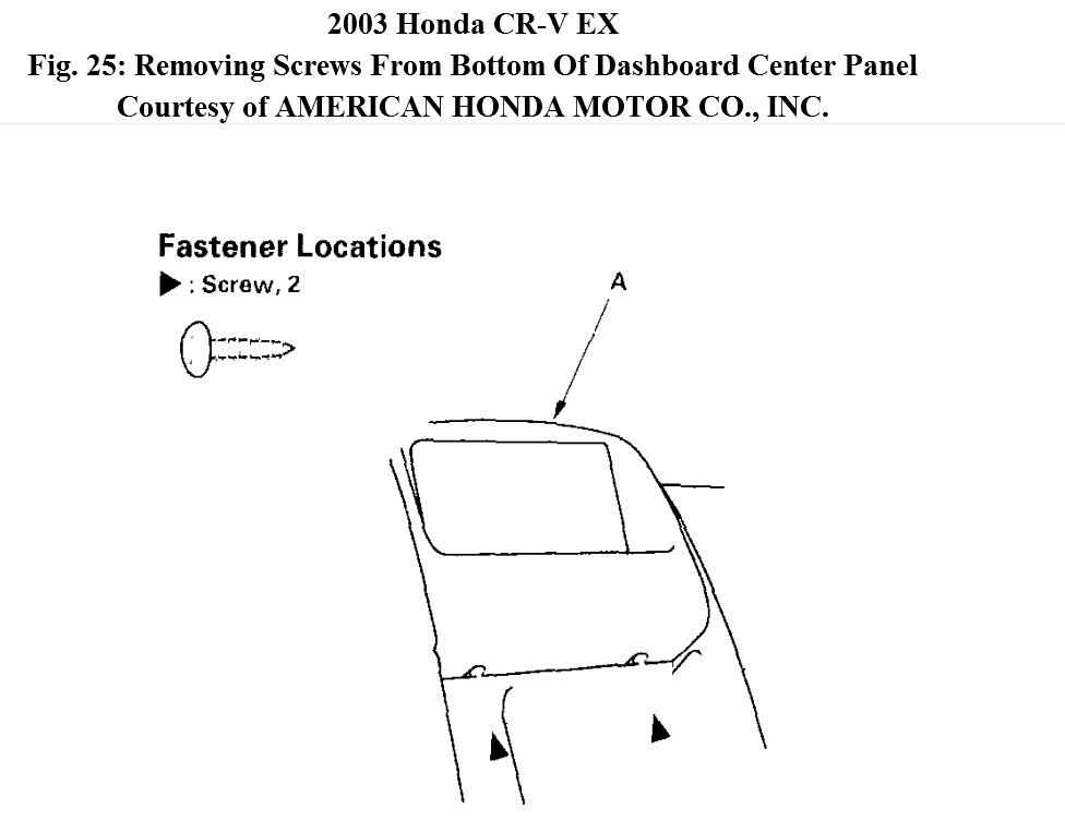 1. Remove the screws from the bottom of the dashboard center panel (A).