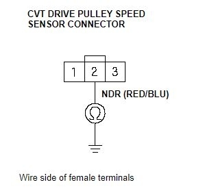 NO - Repair open in the wire between the CVT drive pulley speed sensor connector terminal No. 3 and ground (G101), or repair poor ground (G101).