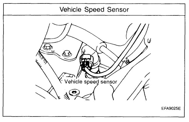 The vehicle speed sensor which is installed on the speedometer driven gear in the transaxle provides a pulse signal to the ECM, and the ECM calculates the vehicle speed. In addition to the vehicle speed sensor, a wheel speed sensor which is installed on the right front wheel provides a direct analog pulse signal to the ECM, and the ECM calculates the vehicle speed. With the ignition switch in ON or START, battery voltage is supplied from fuse 25 to the vehicle speed sensor (VSS). The sensor is grounded at G02(V6)/G03(L4).
