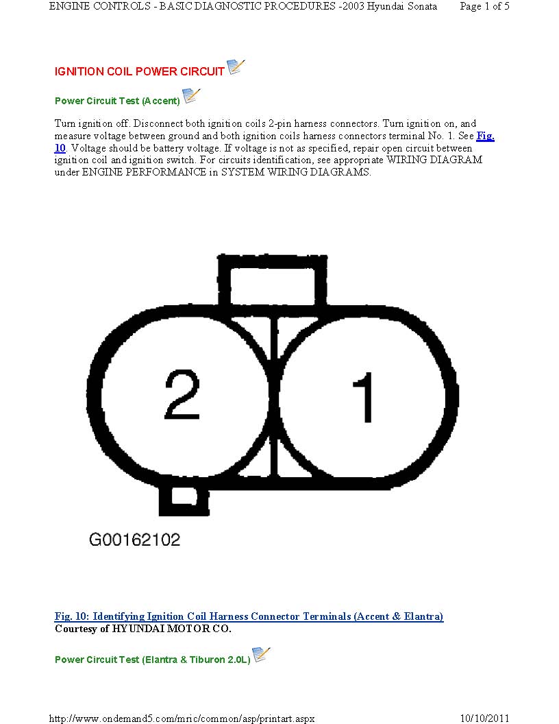 Disconnect one of the plugs wires by grasping it near the base of the plug and twisting while pulling. Next, if you have a #2 Phillips screwdriver, insert it into the plug boot until it makes contact with the electrode at the bottom of the boot. Hold the screwdriver in the boot 1/4 inch from a good ground and have someone crank the engine. You should see and hear a strong and bright blue or white spark. If not, Use a meter to see if the coil is getting power.