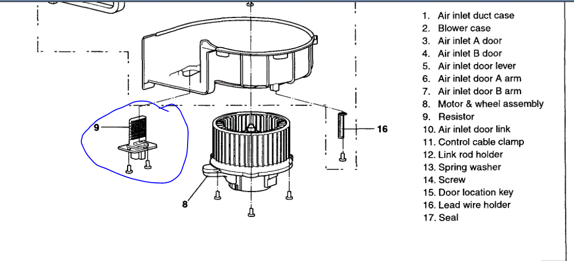 • removed the blower motor and blower resistor.
