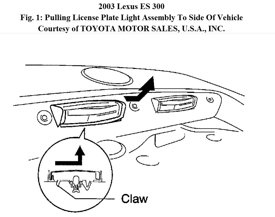 a. Pull the license plate light assy to the side of vehicle as shown in the illustration and release the claw, then disconnect the connector.