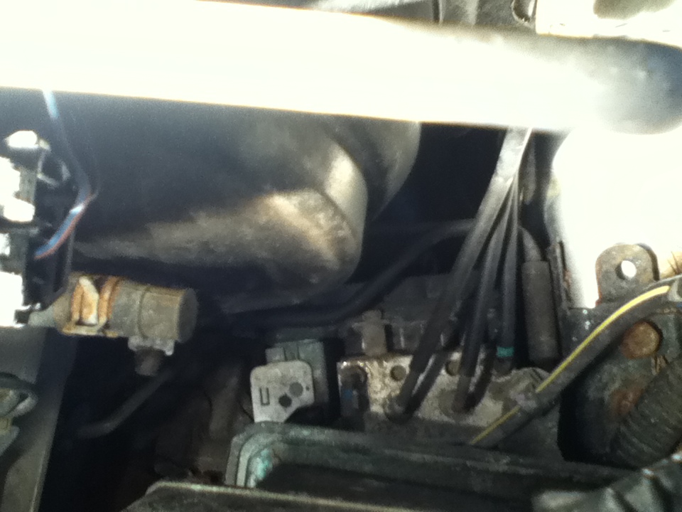 If it is the distribution block, the 2 lines from the master cylinder, which you can see the brake booster in the pciture, the large round part against the firewall, and the master cylinder attaches to the front of that. So, the 2 lines from the master cylinder will go into the ABS servomotor and 2 lines will come out. The 2 lines will then go into the distribution block and 4 lines will come out, 2 for the front and 2 for the rear.