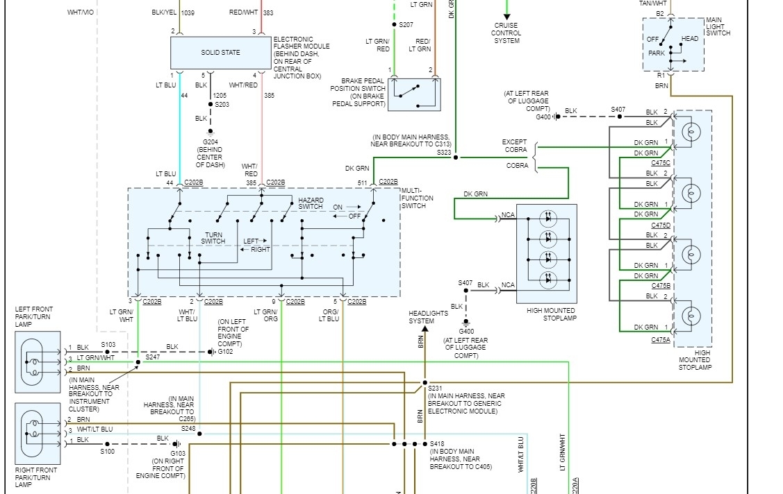 Does the high mounted brake light work? If it still works when you step on the brake pedal the next thing to check would be the multifunction switch. It is what connects the lights together depending on the switch positions, With none of the functions on (no turn or hazards on) the switch position connects the lights up so that the brake lights will work (except the CHMSL, it is fed directly from the switch) When you select say left turn, it disconnects the left lights from the brake circuit and connects them to the flasher power and starts it cycling to flash the lights. Remove the shrouds from the steering column and you can see the screws. This is also where you can test the circuits to see if it's the switch or the wiring, although if it's all those lights it's likely the switch. You say the other lights work? Would that mean all the markers and headlights work? If yes that points even more to the switch.